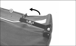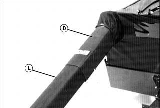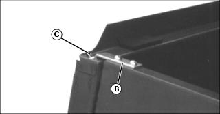 2. Move cover latch rod (C) to next higher hole in latch bracket (D).