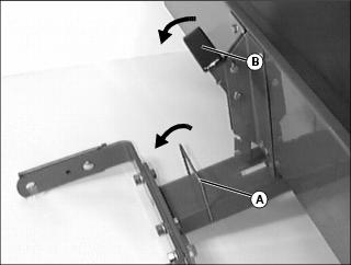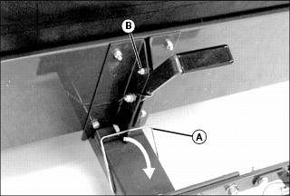 9. Lower box and latch dump latch lever (B) by pushing lever down and rearward.
