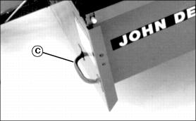 • Get off of tractor and grab lift handle (C) to fully dump load.