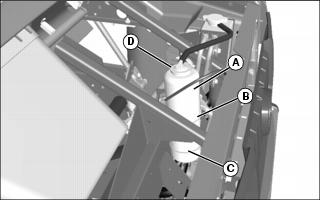 b. Alternate between checking solution level in de-aeration tank, adding solution as necessary, and pulling off air bleed hose (D) to check solution flow from the hose.