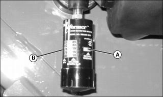 4. Check, the color at sight window (A) and vacuum reading at scale (B).