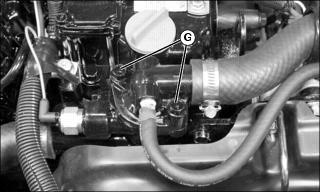 3. Remove screws (G) to remove thermostat housing, thermostat, and O-ring. Inspect and replace O-ring if necessary.