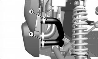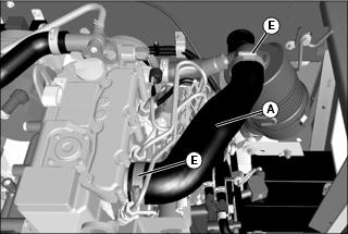 • Air bleed hose (C) goes from engine to de-aeration tank.