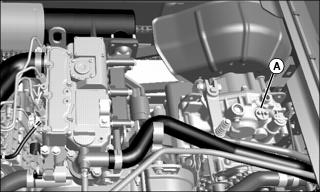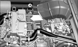 3. Remove dipstick (A) located on the top of the transaxle housing. Wipe dipstick clean.