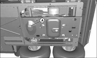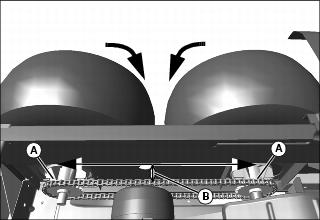 5. Loosen four nuts (A) for both axles so axle housings (B) can slide easily forward and rearward.