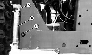 IMPORTANT: Avoid damage! Avoid stripping threads from adjustment bolt (C). Loosen housing nuts (A) before turning adjustment bolts.