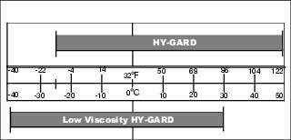 NOTE: For temperatures below -13° C (0° F) John Deere low viscosity HY-GARD™ may be used. If used at temperatures above -13° C (0° F) some brake squeal may be heard due to lower viscosity of the oil at higher temperatures.