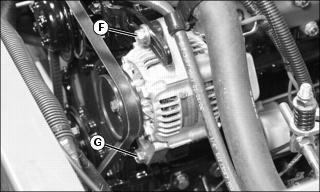 NOTE: Replace alternator belt if excessive wear, damage or stretching is detected.