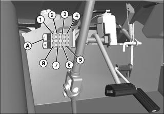 3. Pull fuse from fuse block (A) (next to foot pedal linkage).