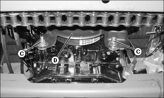 6. Release latches on air cleaner canister cover (D), and remove cover to provide clearance for battery removal.