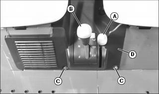 4. Remove two screws (C) retaining front of seat base panel (D).