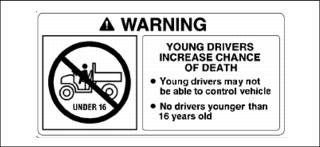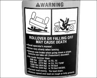 WARNING - ROLLOVER OR FALLING OFF MAY CAUSE DEATH