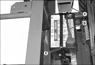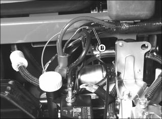 IMPORTANT: Avoid damage! Electric charge from booster battery can damage machine components. Do not install negative booster cable to machine frame. Install only to the engine block.