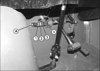 3. Pull fuse from fuse block (A) (next to foot pedal linkage).