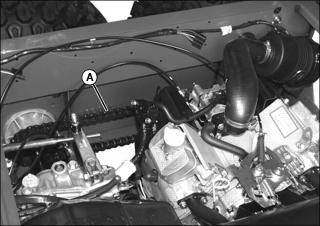 Lubricate one grease fitting (A) on each transaxle coupler with one or two shots of grease.