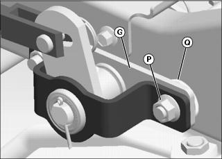• X300R only: Secure rear side of assembly with M10x30 flange bolt and M10 flange nut (P), with M10 washer (Q) under bracket (G).