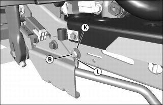 6. Secure right side of rockshaft (B) with bushing (K) and 2.5 x 20 mm cotter pin (L).