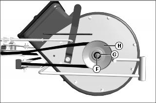 5. Remove and keep bolt (F), washer (G) and sheave (H).
