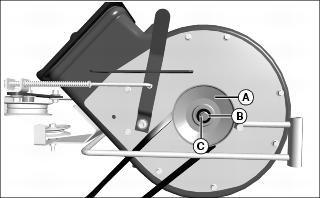 2. Install sheave (A), washer (B) and bolt (C). Tighten bolt to 30-44 N•m (22-32 lb-ft).