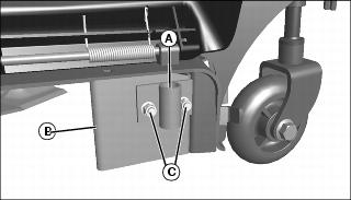 1. Install front mounting bracket (A) onto front baffle plate (B) with two M8x20 carriage bolts and M8 flange locknuts (C). Tighten to 20 - 40 N•m (15 - 29 lb-ft).