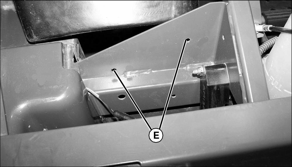 4. Remove solenoid and drill two 7 mm (1/4 in.) holes at two marked locations (E).