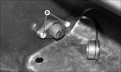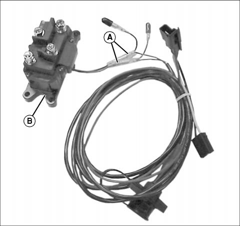 1. Disconnect remote control socket bullet connectors (A) from solenoid (B).