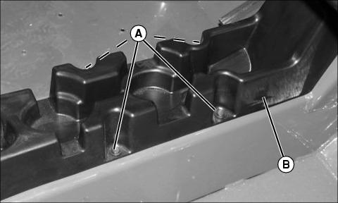 1. If holes are not in gusset (A), drill one 13 mm (1/2 in.) hole (B) at each side of gusset. Center each hole in the gusset to ensure equal metal thickness around the hole.