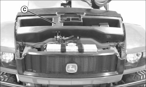 2. Remove hood. Remove utility box (C) by lifting up and out toward front of machine.