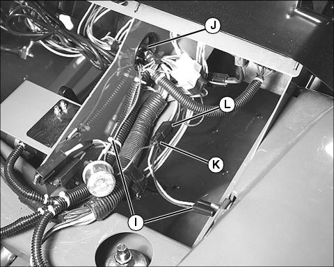4. Secure cables to front brush guard (H) with tie straps (I).