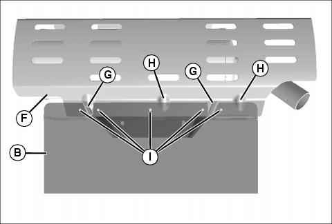 6. Mark the location of the five mounting holes (I) on the existing muffler shield flange, and drill 7 mm (9/32 in.) holes at those locations.