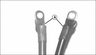 1. Locate the 1.6 m (64 in.) red and black battery cables. Identify the ring terminal ends with insulated covering (A).