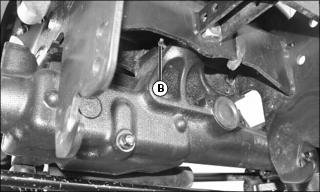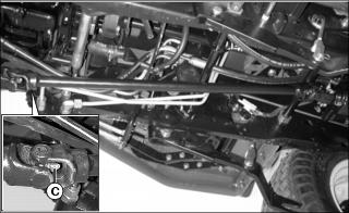 Lubricate rear wheel pivot (B) on both ends of rear axle.