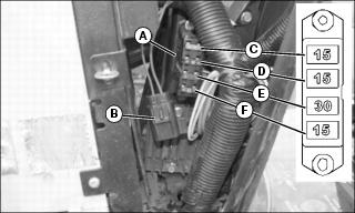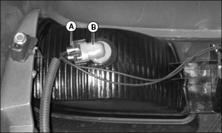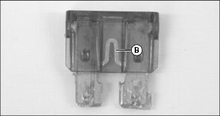 2. Check metal clip (B) in fuse window. Discard fuse if clip is broken.