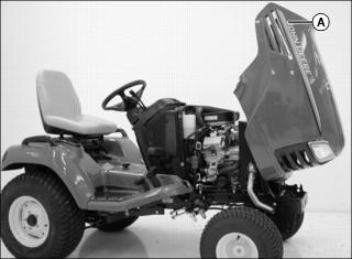 1. Lift rear of hood (A) and tilt to fully upright position.