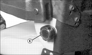 Suspension coils (E) may be moved to three different positions in the seat base slots to make minor adjustments in seat height and suspension stiffness: