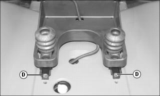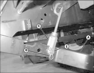 3. Slide rails with seat and suspension forward one inch to align with forward set of mounting holes (D).