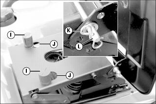 Seat bracket may be positioned at three different heights. To adjust - Remove locking clip (K) and seat rod (L). Position seat bracket to align a different mounting hole with seat base, and install seat rod and locking clip to secure.