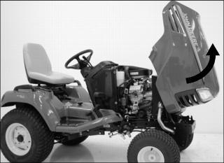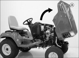 1. Lift rear of hood (A) and tilt to fully upright position.
