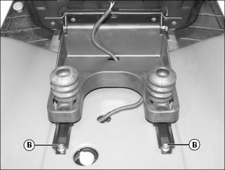 1. Remove and retain two bolts (B) at rear of slide rails.