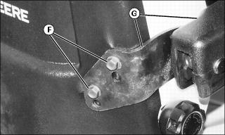 a. Remove two bolts (F) and raise armrest and bracket (G) to the other set of holes.