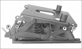 5. Remove four bolts (O) securing seat suspension to slide rails. Use the slide adjustment as necessary to access the front and rear bolts from below.