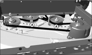 • Lubricate two mower deck spindle grease fittings (A) with two pumps of grease at specified interval.