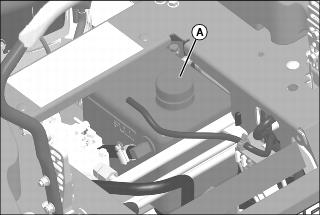 2. Raise operator’s seat, and clean area around reservoir cap (A). Remove cap.