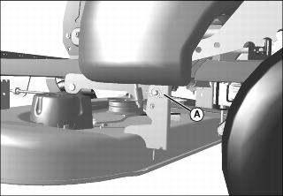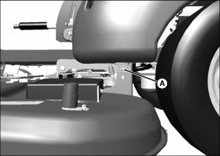5. Lower mower lift lever, and install pin and spring clip (A) onto each side of rear mower bracket.