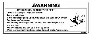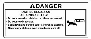 To avoid injury from rotating blades and thrown objects, stay clear of deck edge and keep others away.