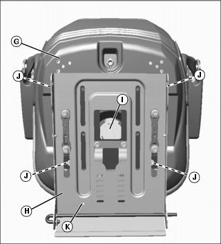 • An adapter plate is supplied assembled to the seat platform, and the four seat mounting bolts (J) are pre-installed into the adapter plate. Push-nuts are installed on the bolts to retain them in the adapter plate. They should remain in place when assembling the seat.