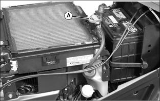 4. Loosen and remove radiator cap (A) slowly to release all pressure.