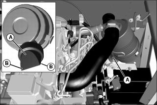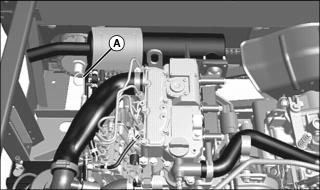 3. Locate dust unloading valve (A) attached to the front of the air cleaner canister cover.