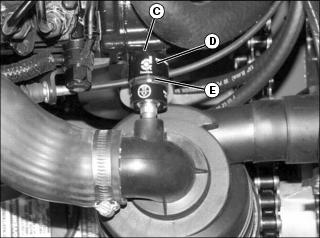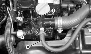 4. If removed, connect air bleed hose (D) at thermostat housing on engine.