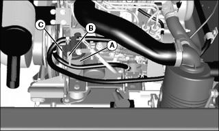 • Air bleed hose (C) goes from engine to de-aeration tank.